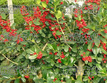 红果冬青常绿乔木或灌木,高可达7米。小枝无毛。叶互生,革质,叶片披针形。长约5~13厘米,宽约1.5~3厘米,先端渐尖,基部楔形,边缘有小锯齿,上面有光泽;叶柄短。花4数,单性,雌雄异株。浆果状核果,呈球形,簇生,红色。生于村庄附近。分布贵州等地。本植物的根(红果冬青根)亦供药用,另详专条